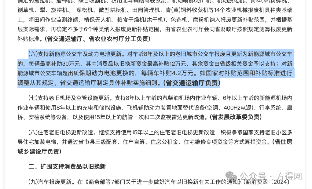 2025年新能源公交换新补贴升级,个别省份补贴高达30万元,能否继续推高客车市场? 更新新能源公交、动力电池的单车补贴,“以旧换新”政策从2024年下半年力推新能源客车市场增长,2025年“以旧换新”不仅延续,而且加码!个别省份每辆最高补助30万元! 2025年客车市场是否迎来新周期? 请看方得网分析报道。